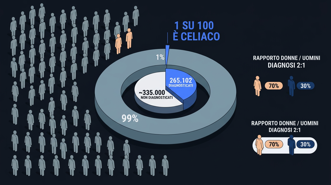La prevalenza stimata della celiachia nella popolazione generale è di circa 1%, sia in Italia che nel resto del mondo occidentale. Questo significa che, statisticamente, 1 persona su 100 è celiaca.